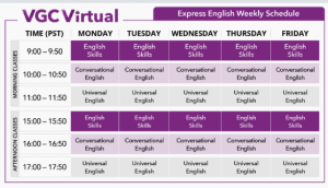 VGC INTERNATIONAL COLLEGE se enorgullece en presentar nuestro curso online más flexible! Un programa de 15 lecciones por semana (3 clases diarias) en horario por la mañana y/o por la tarde.